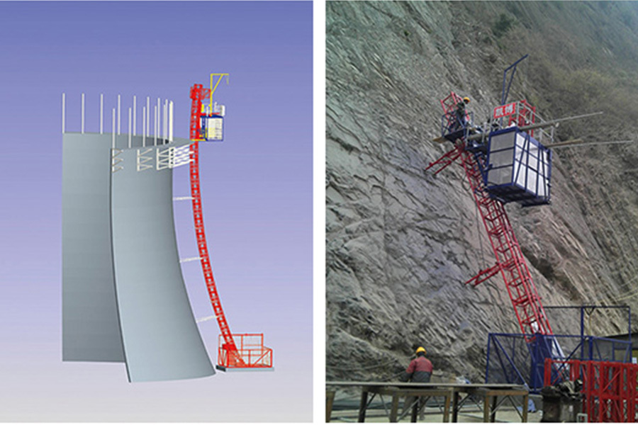 可實(shí)現(xiàn)人員、鋼筋、混凝土的垂直運(yùn)輸;可外掛長度可變平臺,實(shí)現(xiàn)人員、物料的水平運(yùn)輸。廣泛應(yīng)用于煙囪、水塔、及其他異型建筑。